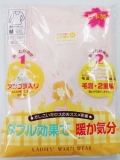 表は保温性に優れたアンゴラ入りの毛混、裏は素肌にやさしい綿混でサラッとしたタッチ。